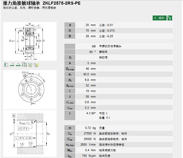 | 軸承型號: | ZKLF2575-2RS-PE | |