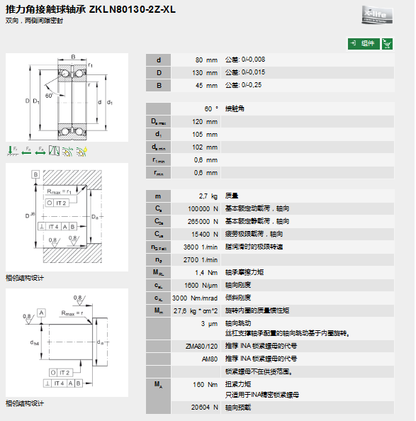 我司專業銷售INA軸承ZKLN80130-2Z軸承,如需購買此型號INA軸承請聯系我們銷售人員。 北京博瑞中興可提供此軸承的參數、樣品、圖片等資料.此軸承類型為推力角接觸球軸承,接觸角為60度,雙向,兩側間隙密封。我公司為舍弗勒集團INA軸承***經銷商,所售產品均為原裝正品、保證質量,請放心購買。訂購電話:010-69296385 QQ724685609