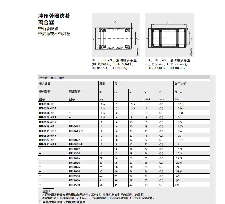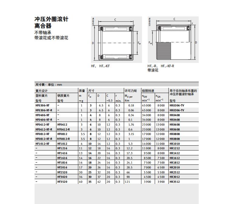 INA沖壓外圈滾針離合器軸承的類型:HF HF..-R HF..-KF HF..-KF-R HFL HFL..-R HFL..-KF HFL..-KF-R