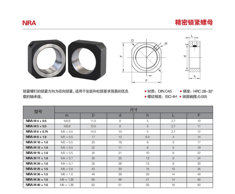 NUT精密鎖緊螺母的供貨品種包括: