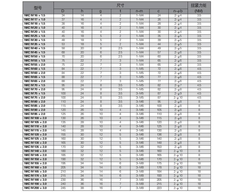 NUT精密鎖緊螺母的供貨品種包括: